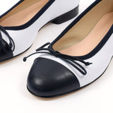 La ballerine bicolore blanc et bleu qui vous ira comme un gant et que vous garderez très longtemps. Parfaite pour la journée comme pour la nuit, mais surtout pour les deux, cette ballerine est faite à partir d'un cuir lisse, fin, résistant et souple afin de vous garantir un très grand confort.