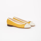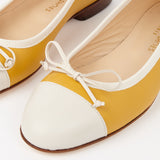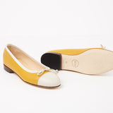 La ballerine bicolore jaune et blanche qui vous ira comme un gant et que vous garderez très longtemps. Parfaite pour la journée comme pour la nuit, mais surtout pour les deux, cette ballerine est faite à partir d'un cuir lisse, fin, résistant et souple afin de vous garantir un très grand confort.