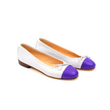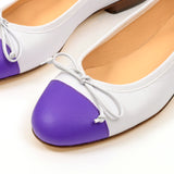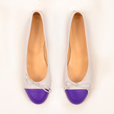 La ballerine bicolore blanc et violet qui vous ira comme un gant et que vous garderez très longtemps. Parfaite pour la journée comme pour la nuit, mais surtout pour les deux, cette ballerine est faite à partir d'un cuir lisse, fin, résistant et souple afin de vous garantir un très grand confort.